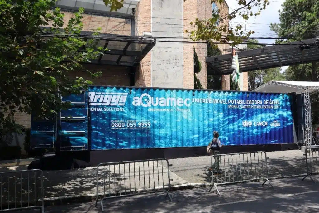 Durante o encontro divulgamos nossa Unidade Móvel de Filtração por Membranas, projetada num contêiner com capacidade de filtração de 180