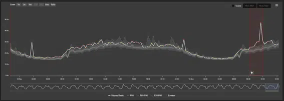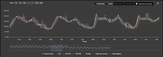 O Flowise integra medições históricas de vazão, continuamente atualizadas, e compara padrões de consumo normalizados com a vazão em tempo real, acionando alertas para eventos anômalos ou extraordinários que possam ser causados por vazamentos, rompimentos, falhas nos medidores ou na transmissão, consumos atípicos, entre outros…A figura a seguir apresenta o padrão de consumo de uma área e suas variações diárias.