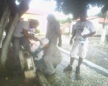 Funcionarios da CAGECE, no momento em que faziam o corte da água. |
