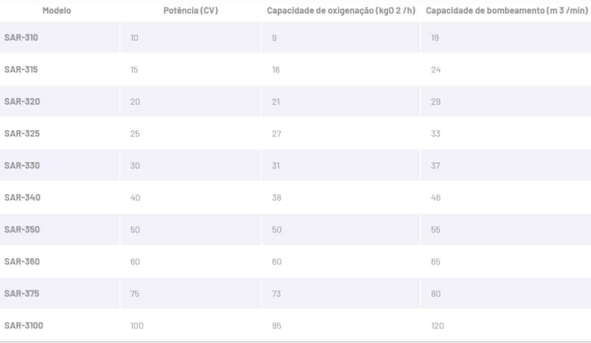 O Aerador de Superfície (SAR) utiliza um motor para acionar diretamente o impulsor de fluxo axial, que descarrega as águas residuais através do defletor e forma uma fina cortina de água.