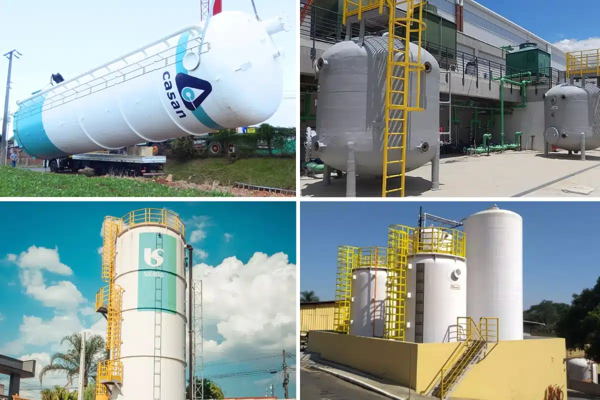 Os reservatórios em PRFV com capacidade de até 4.500 m³ são fabricados pela nossa parceira Tecniplas, empresa brasileira líder na fabricação de equipamentos em PRFV de acordo com as normas ASME RTP-1 / BS 4994 seguindo um rigoroso padrão de qualidade, aliando alta resistência química e mecânica, maior durabilidade e baixa manutenção, além de não sofrer ação de intempéries e corrosão.