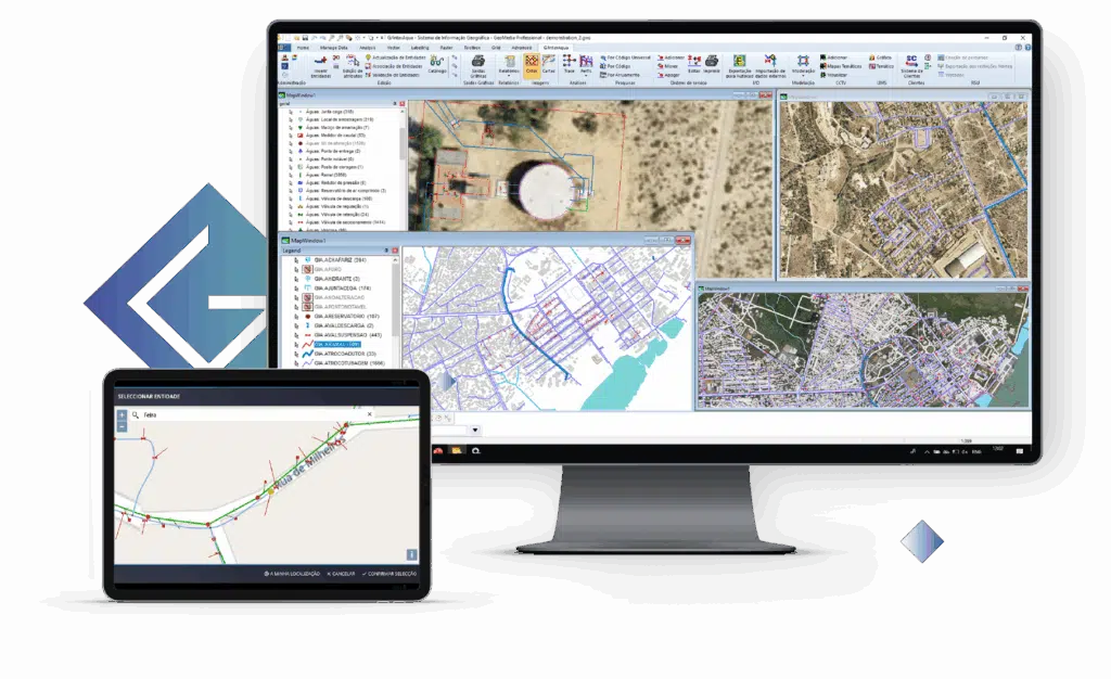 - Recolha e integração de dados: são recolhidos, mantidos e sistematizados dados de cadastro em modelos preparados especificamente para redes de água e esgoto. O G/Interaqua permite a integração com sistemas CRM, ERP, Gestão de Activos e Gestão de Operação
