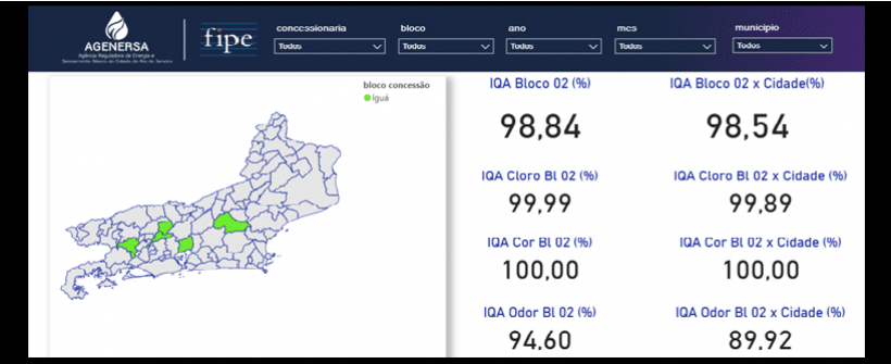 Com recursos interativos e automatizados, o Dashboard permite acompanhar a qualidade dos serviços por bloco de concessão, município, estação de tratamento de água ou esgoto, além de oferecer filtros por ano, mês e até mesmo por dia das coletas. Isso possibilita comparações entre concessionárias, blocos e municípios, bem como análises geoespacializadas das informações auditadas pela Fipe.